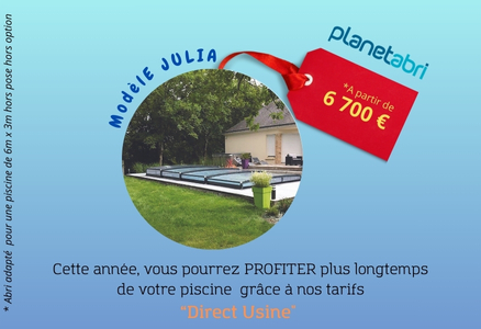 L’abri JULIA est d’une manipulation aisée. Pourvu d’une façade fixe ou démontable et d’éléments empilables, il découvre votre bassin, au gré du climat et de vos désirs.